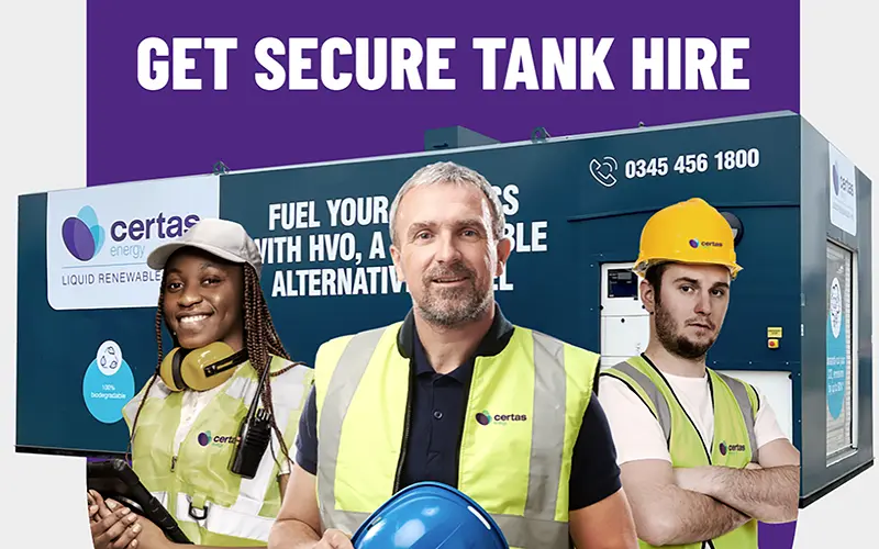 The tank hire proposition is designed to encourage HVO fuel adoption, meaning only HVO fuel supplied by Certas Energy can be used in the dedicated tank.
